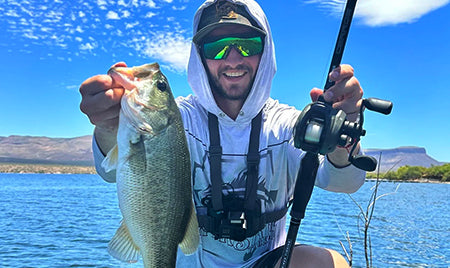 I’m a Phoenix native with 50 years of fishing experience and a five-time “Angler of the Year.” I started professionally in 1990, winning 1st place in my first “All Star Bass Tournament.” In 2007, I became Bass Pro and Nitro Team Captain at Bass Pro Shops in Mesa. Since 2018, I’ve been a licensed guide in Arizona and still compete in statewide tournaments. I’m sponsored by brands like Bass Pro Shop, Nitro Boats, and Mercury. I specialize in drop shotting, Texas rigs.
