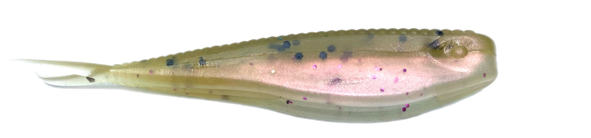 Our 2.5" Micro Drunkin Shad is the perfect "Tiny Fluke" style soft Jerkbait. At 2.5" it mimics small baitfish which the bass feed on throughout the year. With the popularity of forward facing sonar (FFS and LiveScope), this "minnow" style bait is winning millions when fished around suspended bass or bass around brush piles. We like to call it "Live Bait", because our color selection, along with the profile, fools the fish into thinking it's an actual shad. If you are looking to capitalize on the Forward Facing Sonar revolution, look no further, at 2.5" our Micro Drunkin Shad will keep you getting bites long after other FFS baits stop producing.